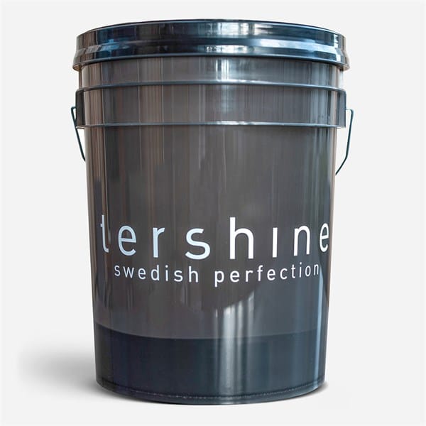 Grymt smutt och robust hink som rymmer drygt 18 liter. Riktigt läckert röktonad så man enkelt ser hur mycket vatten som finns kvar. Grit-guard och vattentätt lock samt tryckt logga och litermått på sidan. Ett måste i tvätthallen eller på uppfarten.